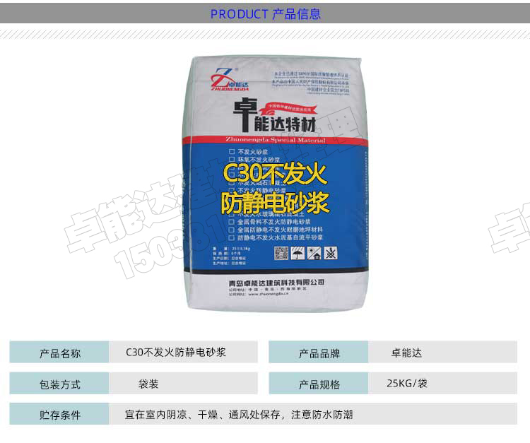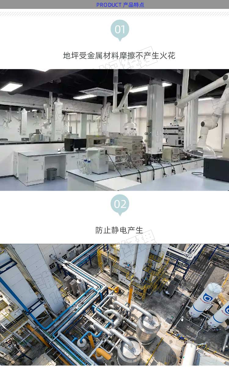 C30不發火防靜電水泥砂漿 一、 產品簡介 主要由白云石,石英砂,外加劑、特種水泥等組成。本品具有不發火性和較高的耐磨損性,抗沖擊,耐潮濕,裝飾性強,不起粉,易施工,且遇到沖擊或摩擦不產生火花。 二、應用范圍 1.輕工業廠房、機械摩擦車間、2.電子精密儀器儀表車間、油品制造及儲蓄庫、氣體制造車間、3.高壓變電間、倉庫物流、易燃貨物堆放區、實驗室 三、性能特點 1、 地坪受金屬材料摩擦不產生火花。2.防止靜電產生3.抗壓強度高,28天30MPA耐磨, 2、 預包裝產品不需要摻加其他材料。 3、 可抵抗油脂,易清潔。 4、與新澆砼表面整體結合,施工工期短。 5、非金屬骨料潮濕環境不銹蝕,地坪表經連續使用后可增加光滑度。
