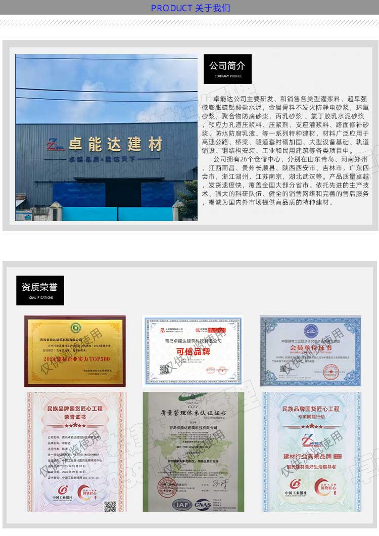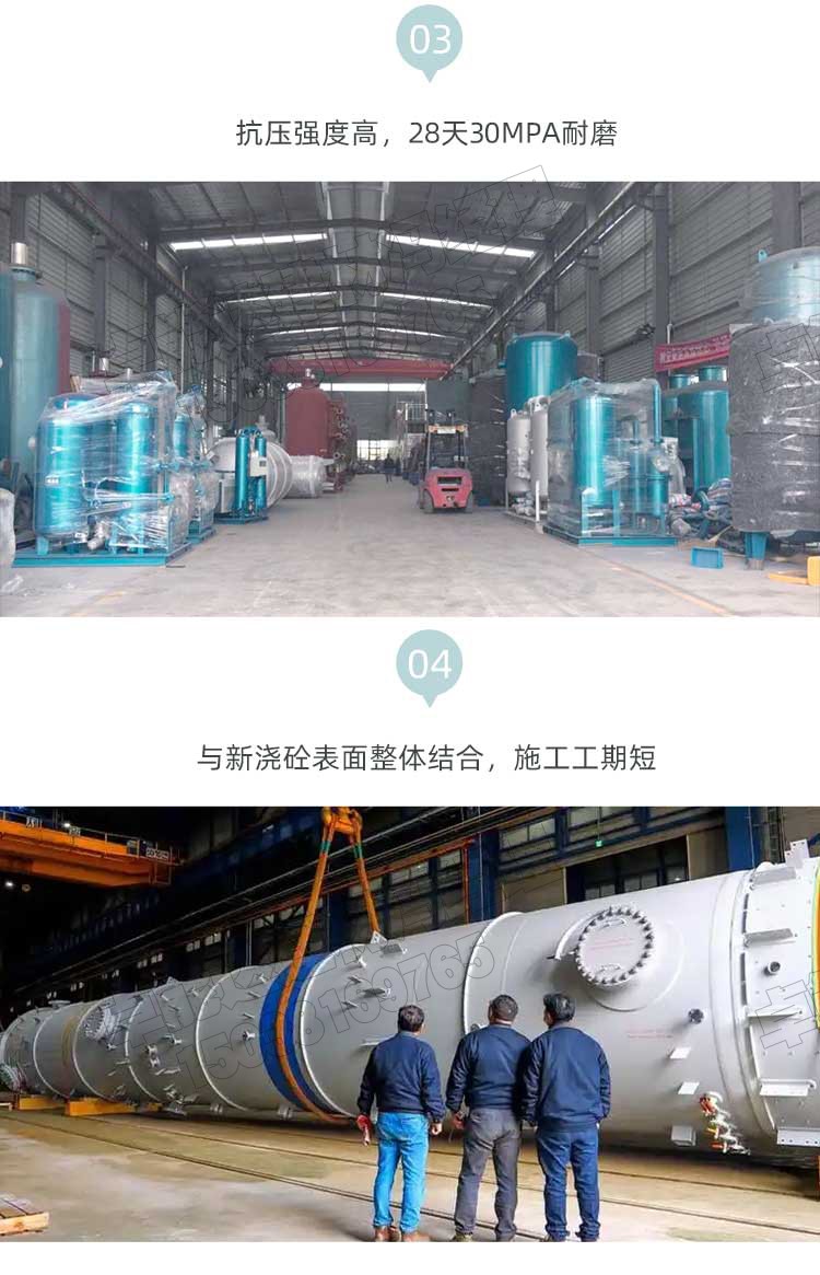 C30不發火防靜電水泥砂漿 一、 產品簡介 主要由白云石,石英砂,外加劑、特種水泥等組成。本品具有不發火性和較高的耐磨損性,抗沖擊,耐潮濕,裝飾性強,不起粉,易施工,且遇到沖擊或摩擦不產生火花。 二、應用范圍 1.輕工業廠房、機械摩擦車間、2.電子精密儀器儀表車間、油品制造及儲蓄庫、氣體制造車間、3.高壓變電間、倉庫物流、易燃貨物堆放區、實驗室 三、性能特點 1、 地坪受金屬材料摩擦不產生火花。2.防止靜電產生3.抗壓強度高,28天30MPA耐磨, 2、 預包裝產品不需要摻加其他材料。 3、 可抵抗油脂,易清潔。 4、與新澆砼表面整體結合,施工工期短。 5、非金屬骨料潮濕環境不銹蝕,地坪表經連續使用后可增加光滑度。 四:施工方法 工具:攪拌機 抹灰刀 磨光機 撒布 直接撒布或者抹涂,在初凝的混凝土表面撒布一層,多次打磨,為保證效果建議每平方用量6至10kg/㎡。 (二)抹面使用 (1)基地:要求毛糙,清理干凈,用水濕潤無明水。 (2)攪拌:按照20kg/㎡/cm的用量,材料按照按廠家建議加水量比例加水攪拌后根據施工厚度進行涂抹。建議每次不要超過2公分。 打磨:根據要求打磨拋光,由粗到細多次打磨壓光。 養護:待材料初凝后可進行灑水養護或者覆膜養護,養護期3-7天。 五、包裝儲運 1)包裝 : 袋裝,25KG/袋。 (2)貯存: 宜在室內陰涼、干燥、通風處保存,注意防水防潮。